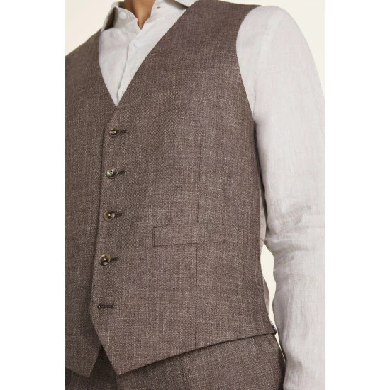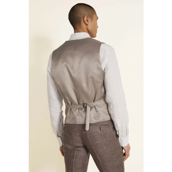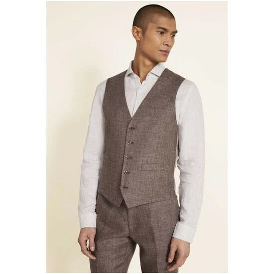 Moss Bros Brown Tailored Fit Linen Suit: Waistcoat