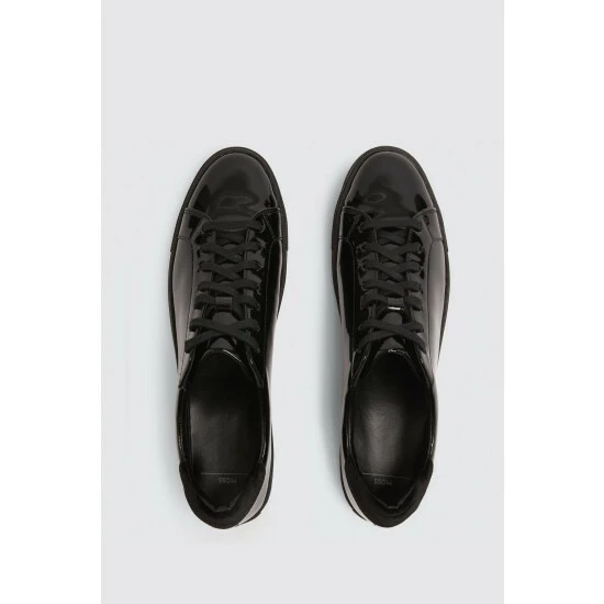 Formal meets sportive in Moss London’s new trainers. They’re designed in an all-black palette with patent uppers for a slick finish that’ll work from the office to the bar and into the weekend. A matte backtab balances out the look nicely.