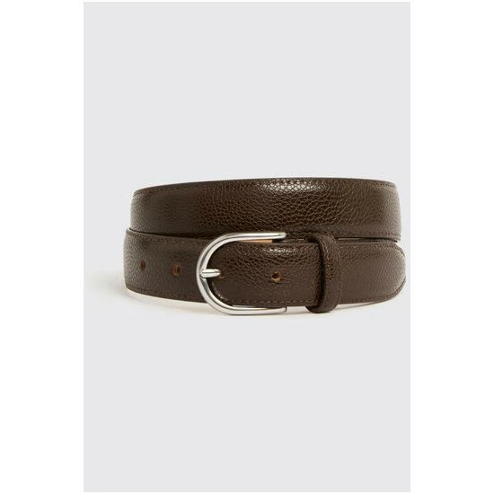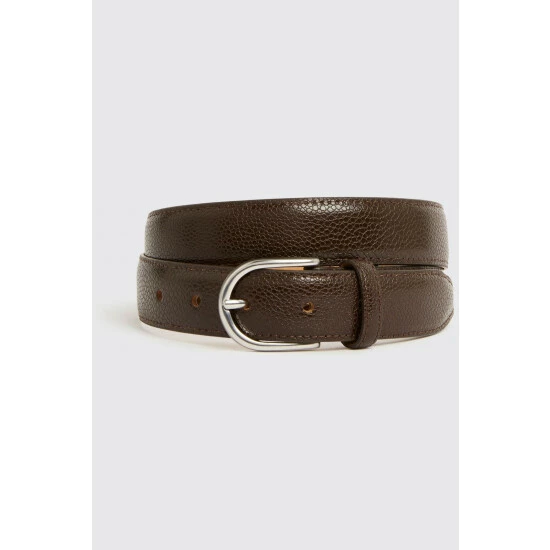 Featuring a hefty grain that gives the chocolate leather plenty of character, Moss UK-made belt is an all-rounder you’ll come to rely on. The rounded pin buckle is crafted in silver-tone hardware, while a tonal leather keeper holds the tip neatly in place.