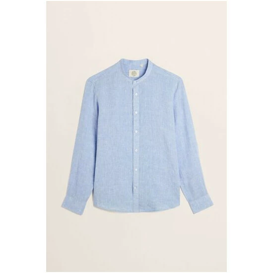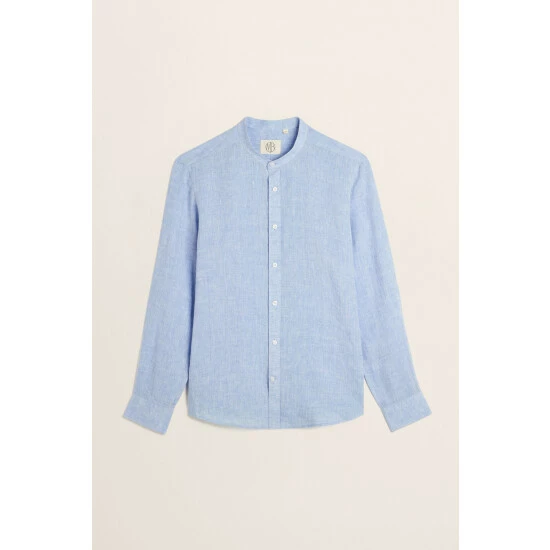 Moss Bros Moss Blue Tailored Fit Sky Grandad Collar Shirt