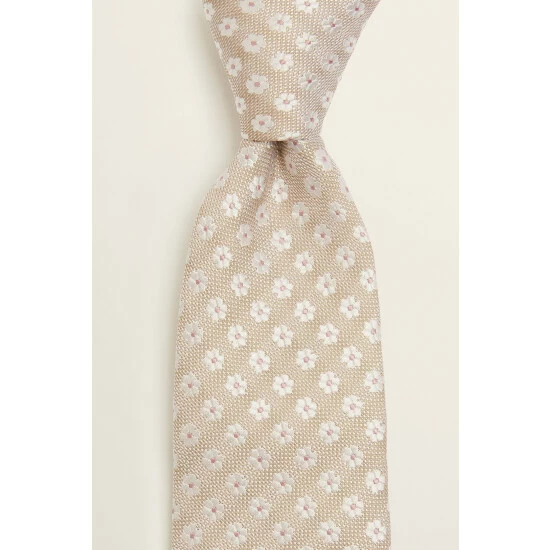 Moss Bros Moss Gold Champagne Floral Geo Silk Tie