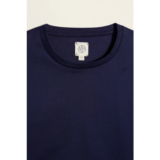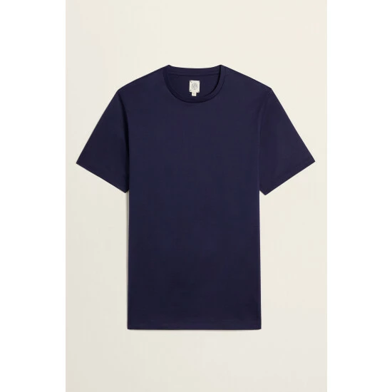 Moss Bros Moss Ink Blue Mercerised Crew Neck T-Shirt