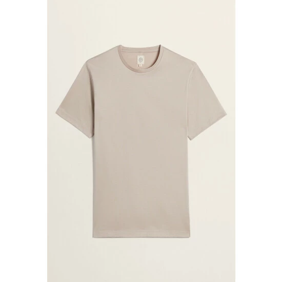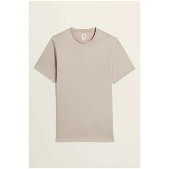 Moss Bros Moss Natural Latte Mercerised Crew Neck T-Shirt