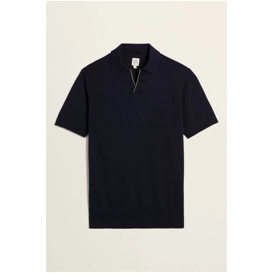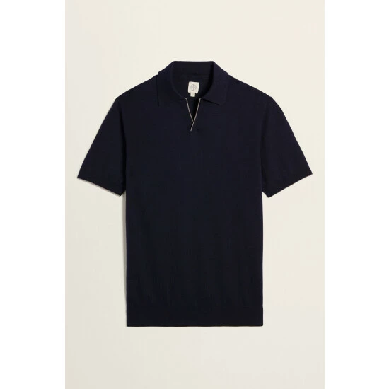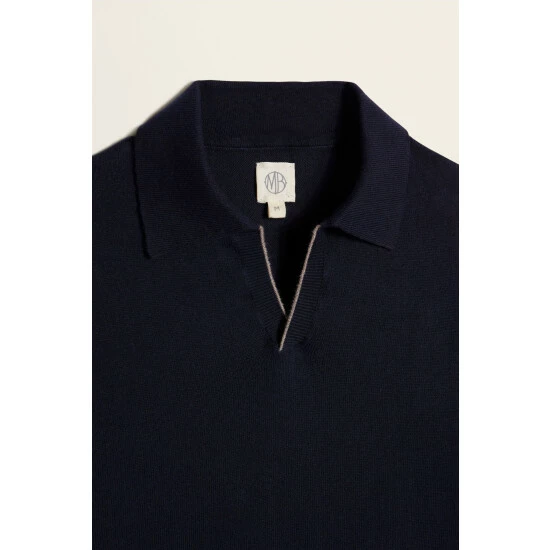 Moss Bros Moss Navy Blue Cotton-Cashmere V-Neck Skipper Jumper