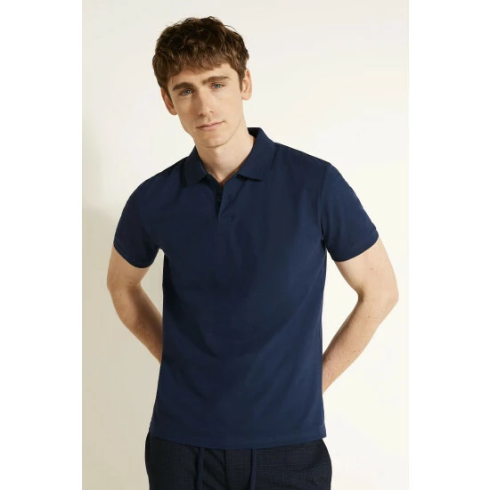 Delivered in deep navy that’ll lend itself to a variety of looks, Moss Bros polo shirt will quickly claim its place at the centre of your easygoing options. Cut to a regular fit for a casual effect, it’s designed in cotton blended with stretch and woven with an open-structured piqué technique to promote cooling breathability.