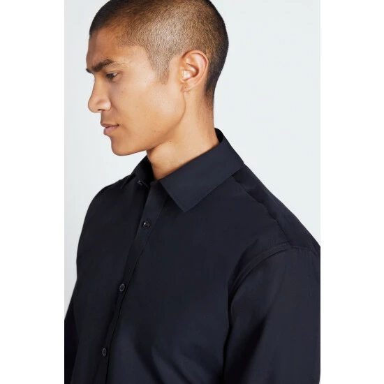Often found at the centre of a man’s collection, the black shirt is a real workhorse for modern style. Freshen up your options with Moss 1851’s take, crafted in a cotton blend woven with a crisp poplin structure that’ll go with anything and everything. The regular fit guarantees strong lines that won’t feel restrictive and the non-iron finish will have you looking and feeling on form in a fraction of the time.