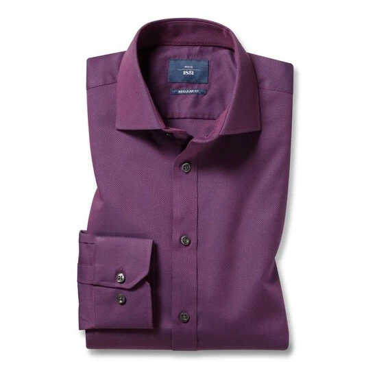 Moss Bros Moss Regular Fit Single Cuff Berry Dobby Shirt