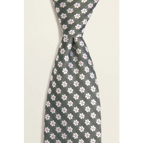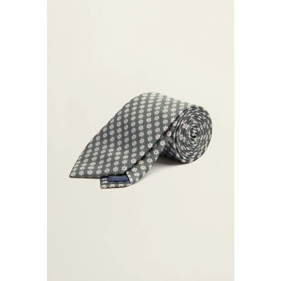 Moss Bros Moss Sage Green Floral Geo Silk Tie
