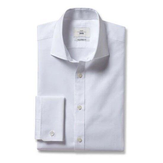 Spruce up your formal options with Moss 1851’s tailored-fit shirt, woven in soft cotton with a dobby structure and jacquard pattern that deliver plenty of texture. Add your choice of links to the double cuffs to impress. With the fresh white backdrop, you re free to go pearlised, onyx, colourful – whatever takes your fancy.