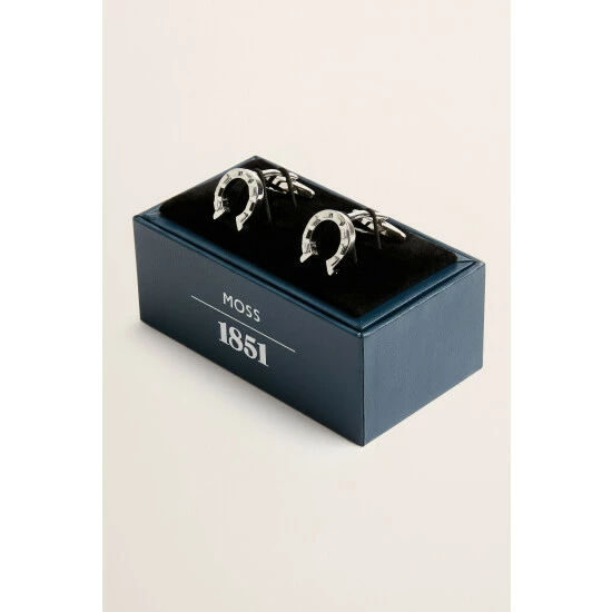 Moss Bros Silver Ascot Silver Horseshoe Cufflinks