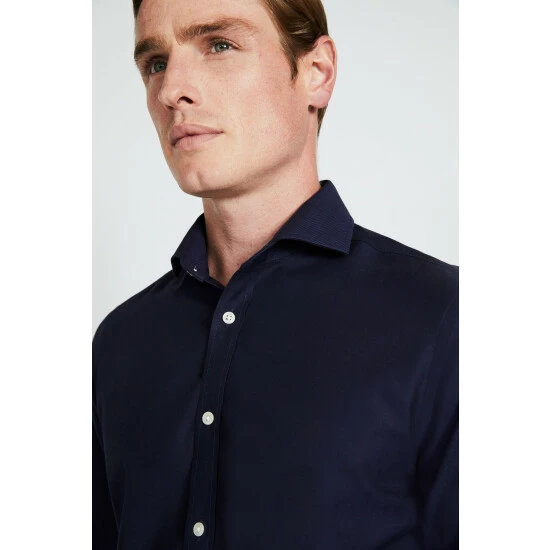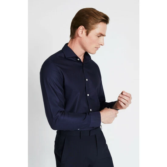Moss Bros Tailored Fit Navy Non-Iron Shirt