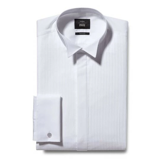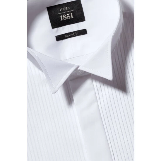 Freshen up your formal touches with Moss 1851s clean take on the white dress shirt. Cut to a tailored fit for a neat profile that’s got room to move, it’s crafted in pure-cotton yarns for natural breathability you’ll appreciate at black-tie events. The upright wing collar is just the thing for your finest bow tie, while the pleated big and concealed placket work together for a balance of minimalism and detail. Add Moss cufflinks for a finishing touch that’ll hit all the right notes.